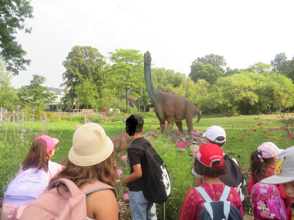 Am Donnerstag haben wir einen Ausflug in den Kölner Zoo zu den beeindruckenden Dinosauriern der Sonderausstellung bis zum niedlichen Elefantenbaby gemacht. Die riesigen, lebensgroßen und beweglichen Dinosaurier wie Triceratops, Argentinosaurus und T-Rex sorgten sowohl bei den Kindern wie auch den BetreuerInnen für große Augen und alle kamen aus dem Staunen über die „Echtheit“ der Dinos nicht heraus. Aber auch die anderen Tiere, die sich trotz der Hitze in ihren Gehegen blicken ließen, bekamen die vollste Aufmerksamkeit der Kinder. Zum Auftanken zwischen Staunen und Tierliebe konnten die Kinder sich auf dem tollen Spielplatz austoben und eine kleine Abkühlung sowohl von außen –Dank Rasensprenger und innen durch ein leckeres Eis durften nicht fehlen.